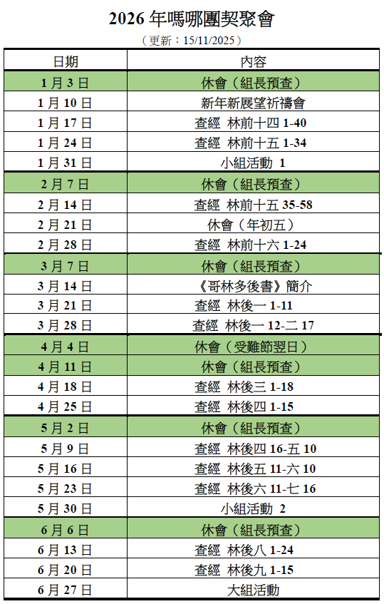 [週六青崇 2:45 pm ][ 週六晚堂 5:00 pm ]