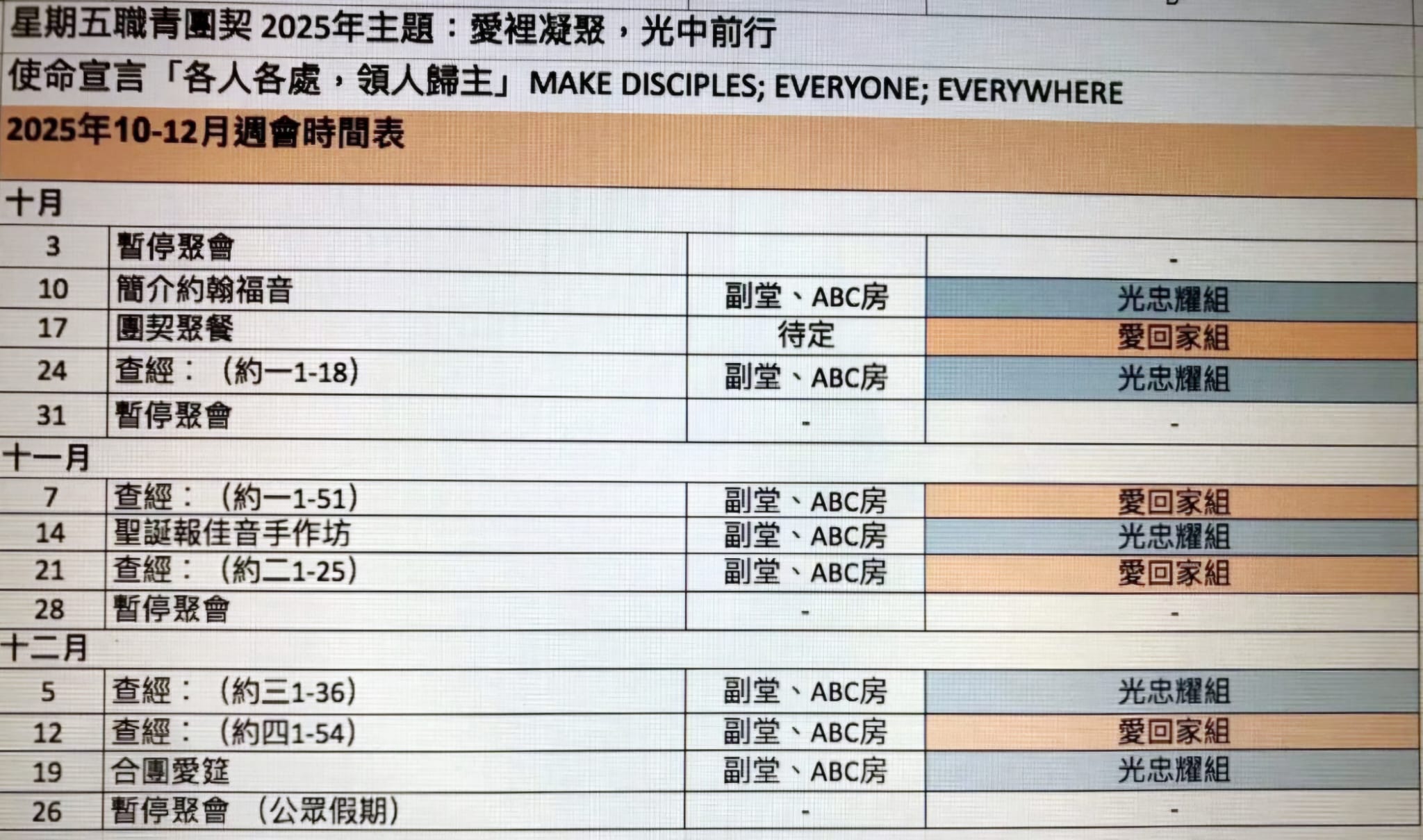 聚會時間:每月第1、2、3週,星期五晚上7:30 -9:30