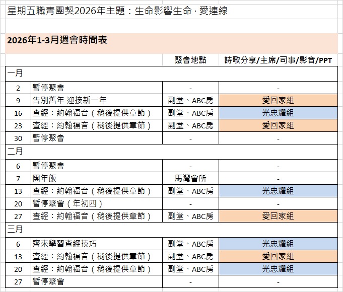 週五職青團契2026年1-3月份週會