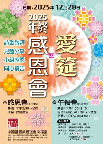 讓我們預留時間出席年終感恩會,一起享受感恩筵席的主菜!