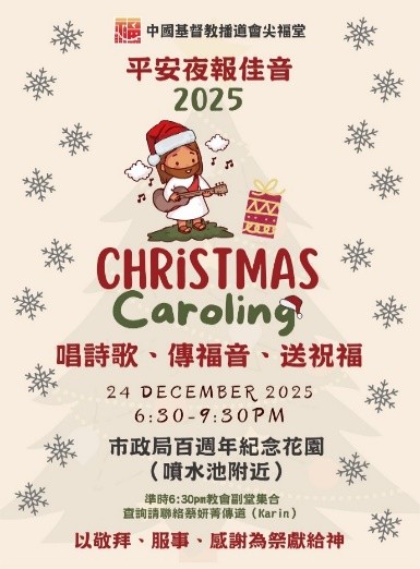 「因有一嬰孩為我們而生;有一子賜給我們。政權必擔在他的肩頭上;他名稱為「奇妙策士、全能的神、永在的父、和平的君」。(以賽亞書9:6)最近大埔的火災事件,香港大部份市民已經逐漸消化和沉澱此事,生活慢慢也回復正常。但對於不少團體考慮「今年應否繼續到街上報佳音?」的問題,有香港註冊社工回應「連結」在災後尤為重要,包括與自己、他人、大自然及信仰的連結,節日活動能促進人際聯繫,而在不安時接觸大自然,也能帶來平安與療癒。」1 聖誕前夕被稱為「平安夜」(Christmas Eve),源自十九世紀初著名的聖誕頌歌〈平安夜〉(德文: "Stille Nacht"),最期望是藉著詩歌給眾人的心靈帶來和平、恬靜、喜樂的氣氛。詩歌中「基督賜下平安」的真義豐豐富富地演繹出來,正因為耶穌基督的降生、受難和升天,留下給世上的,就是藉世人的回轉而得著從上賜下來的平安。耶穌基督曾說:「我留下平安給你們,我把我的平安賜給你們。我所賜給你們的,不像世人所賜的。你們心裡不要憂愁,也不要膽怯。」(約翰福音14:27)